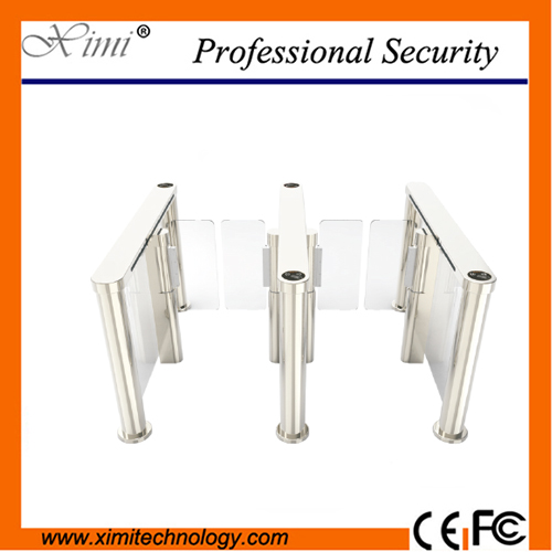 response. * Alarm function, in case of illegal intrusion and reverse intrusion. * Infrared sensor to prevent pinch pedestrians. * Anti-breakthrough function. The gate is locked automatically until opening signal received. * Anti-trailing function, the turnstile will lock if someone wants to burst in without swiping the RFID card. * LED indicator. * Automatic reset function. If the user fail to pass within the prescribed time (default time is 5 seconds), the system will cancel the authority of the current user automatically. * When power off, optical turnstile will open automatically, which is complying with fire safety requirements. * Swing Barrier Gate is designed to control pedestrians entering or exiting restricted areas,