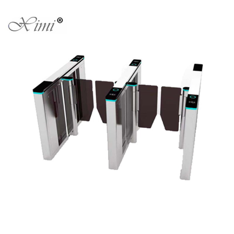 response. * Alarm function, in case of illegal intrusion and reverse intrusion. * Infrared sensor to prevent pinch pedestrians. * Anti-breakthrough function. The gate is locked automatically until opening signal received. * Anti-trailing function, the turnstile will lock if someone wants to burst in without swiping the RFID card. * LED indicator. * Automatic reset function. If the user fail to pass within the prescribed time (default time is 5 seconds), the system will cancel the authority of the current user automatically. * When power off, optical turnstile will open automatically, which is complying with fire safety requirements. * Swing Barrier Gate is designed to control pedestrians entering or exiting restricted areas,