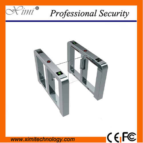 response. * Alarm function, in case of illegal intrusion and reverse intrusion. * Infrared sensor to prevent pinch pedestrians. * Anti-breakthrough function. The gate is locked automatically until opening signal received. * Anti-trailing function, the turnstile will lock if someone wants to burst in without swiping the RFID card. * LED indicator. * Automatic reset function. If the user fail to pass within the prescribed time (default time is 5 seconds), the system will cancel the authority of the current user automatically. * When power off, optical turnstile will open automatically, which is complying with fire safety requirements. * Swing Barrier Gate is designed to control pedestrians entering or exiting restricted areas,