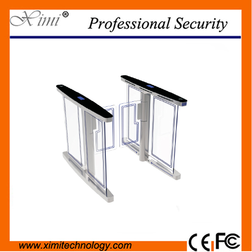 response. * Alarm function, in case of illegal intrusion and reverse intrusion. * Infrared sensor to prevent pinch pedestrians. * Anti-breakthrough function. The gate is locked automatically until opening signal received. * Anti-trailing function, the turnstile will lock if someone wants to burst in without swiping the RFID card. * LED indicator. * Automatic reset function. If the user fail to pass within the prescribed time (default time is 5 seconds), the system will cancel the authority of the current user automatically. * When power off, optical turnstile will open automatically, which is complying with fire safety requirements. * Swing Barrier Gate is designed to control pedestrians entering or exiting restricted areas,